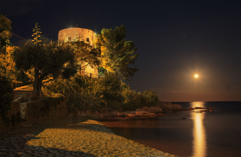 Il suo nome è tutto nella leggenda, una leggenda d’amore, quella della "principessa, costretta a fuggire dalla città spagnola di Navarra a causa del padre, il re Garcia Sanchez IV. Correva l’anno 1052, e la reale trovò rifugio in questa baia durante una violenta tempesta: così, in ringraziamento, fece costruire per la Madonna una chiesetta tutta bianca all’ombra degli olivi. Una chiesetta, la chiesa di Santa Maria, che ancora oggi si può vedere”.